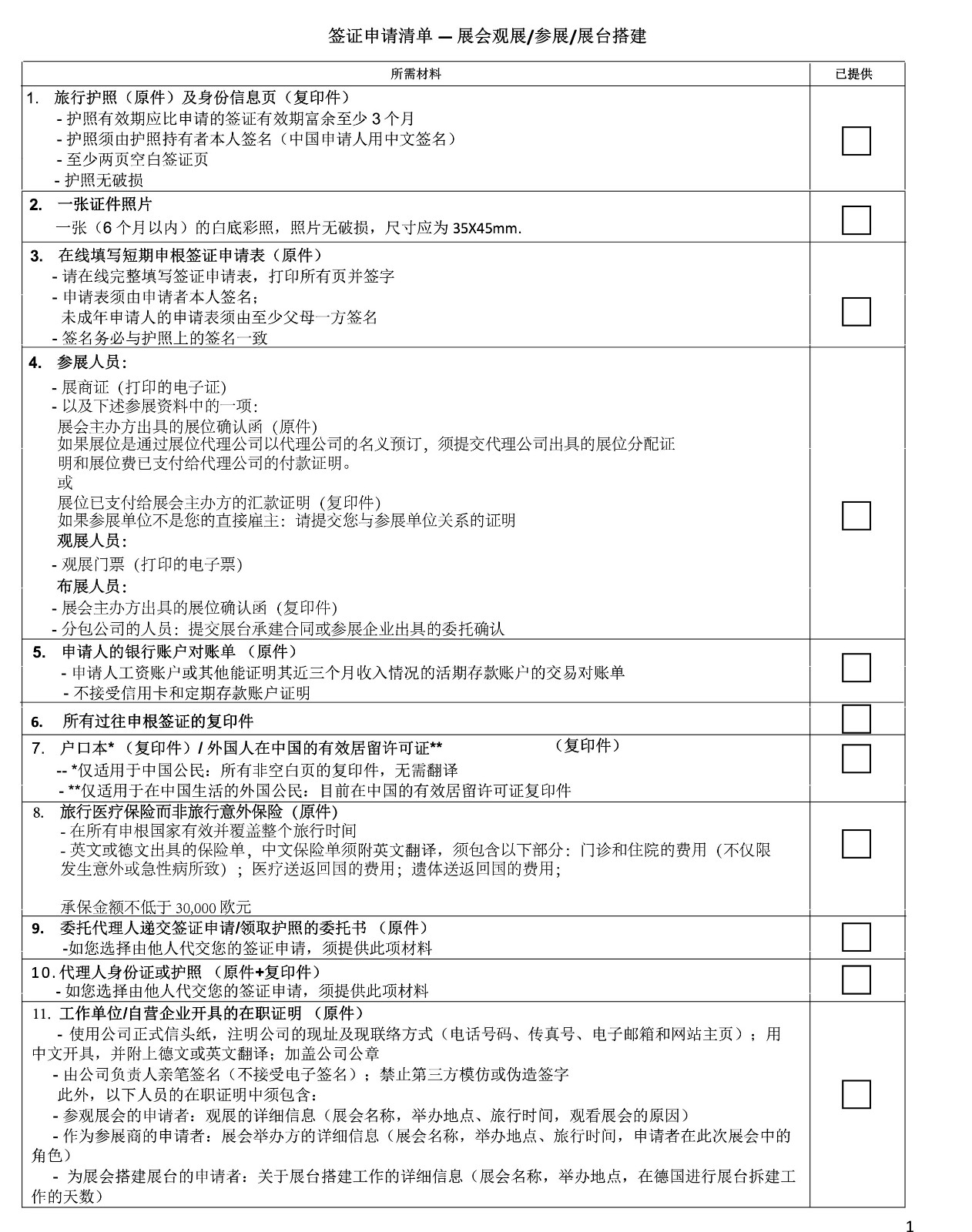 1、德国签证申请清单-展会观展/参展/展台搭建