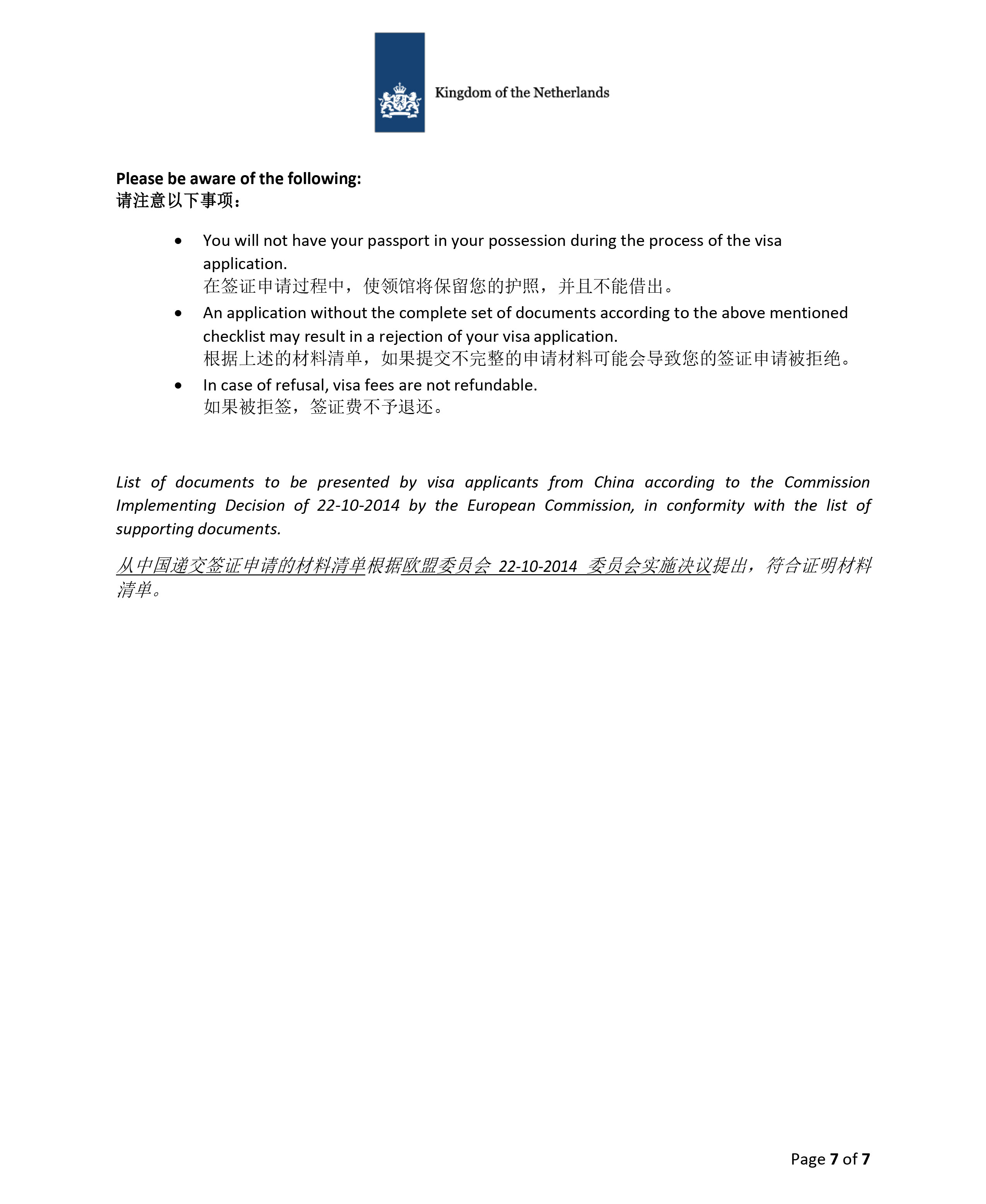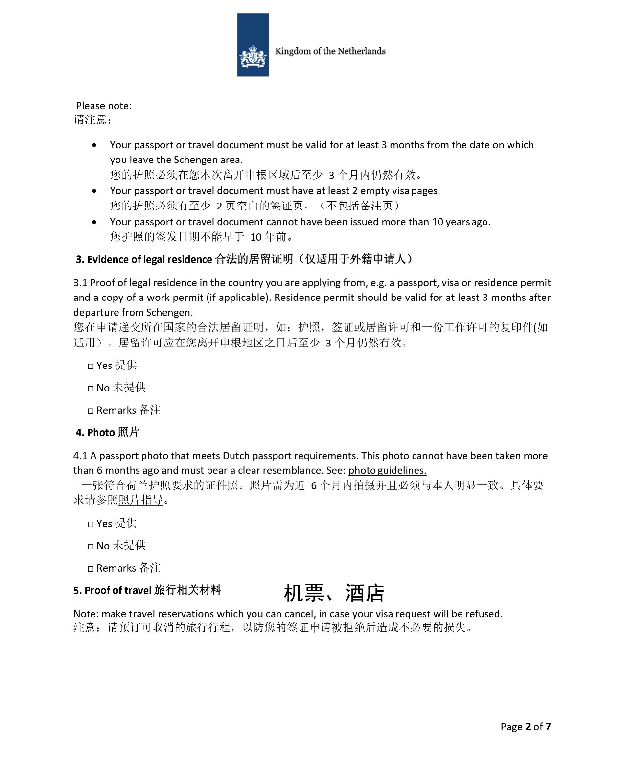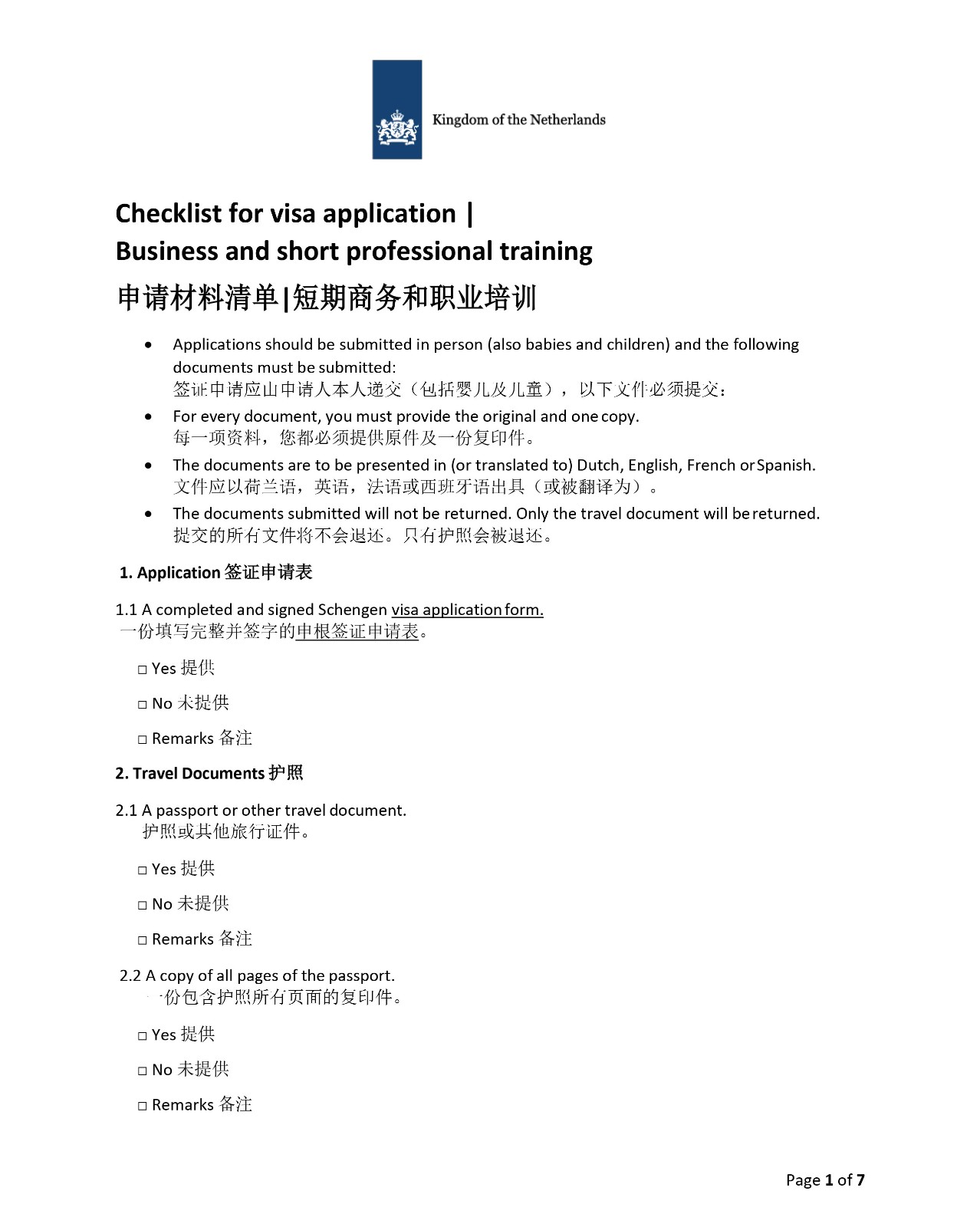 3、荷兰申请材料清单|短期商务