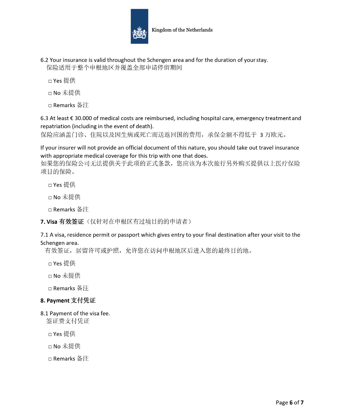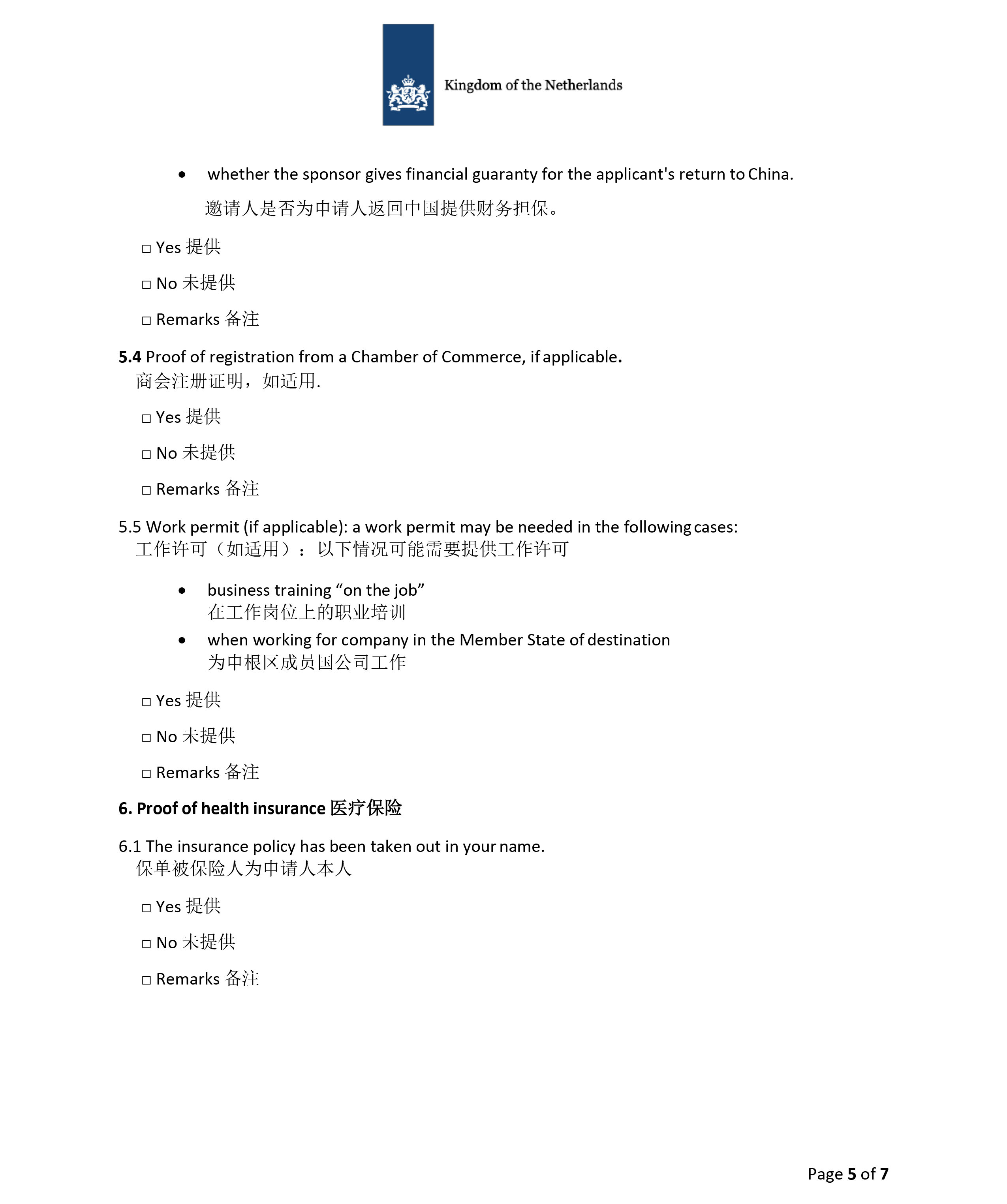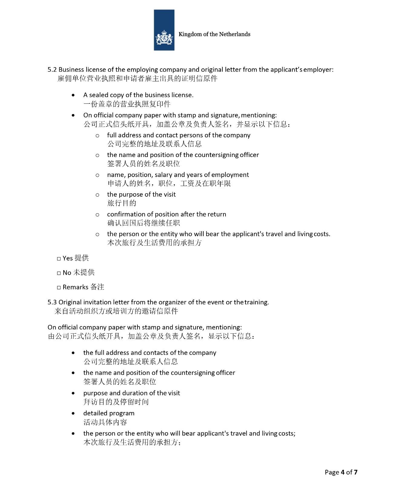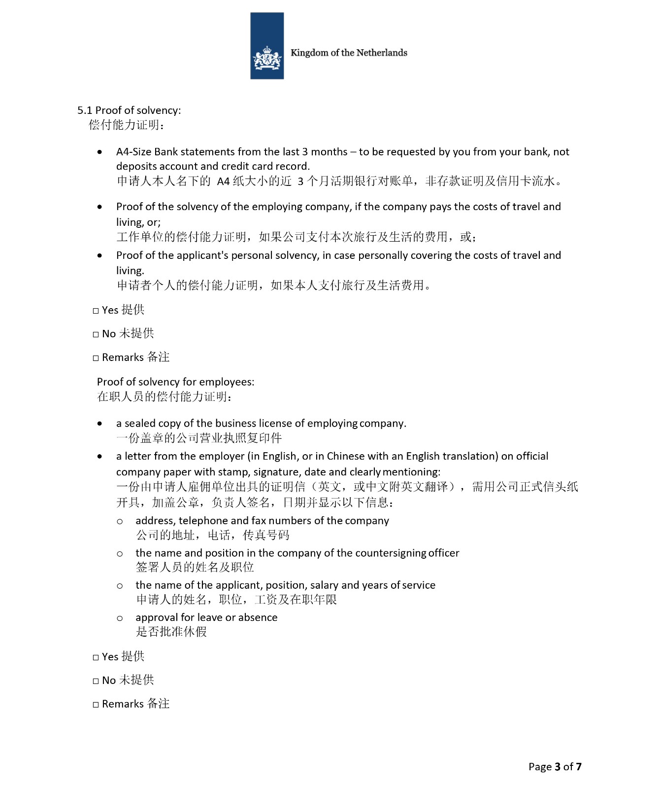 3、荷兰申请材料清单|短期商务