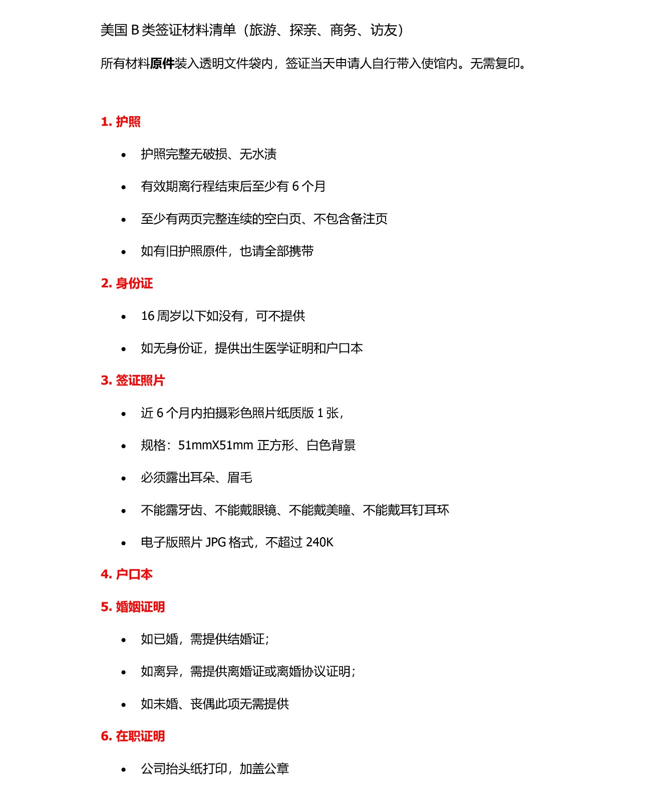 5、美国商务签证资料清单B1/B2